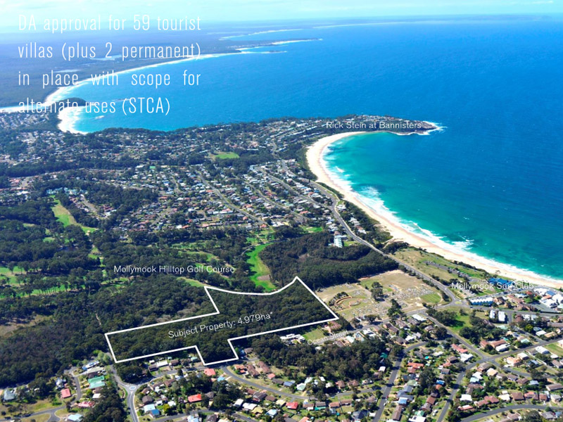 Situated in Mollymook, an established coastal town approximately 255km south of Sydney, the 5ha site has approval for 59 tourist villas.
